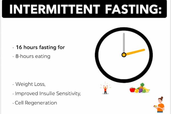 - 5주차 이후: 16시간 단식, 8시간 식사 (저녁 8시 - 오후 12시 단식)