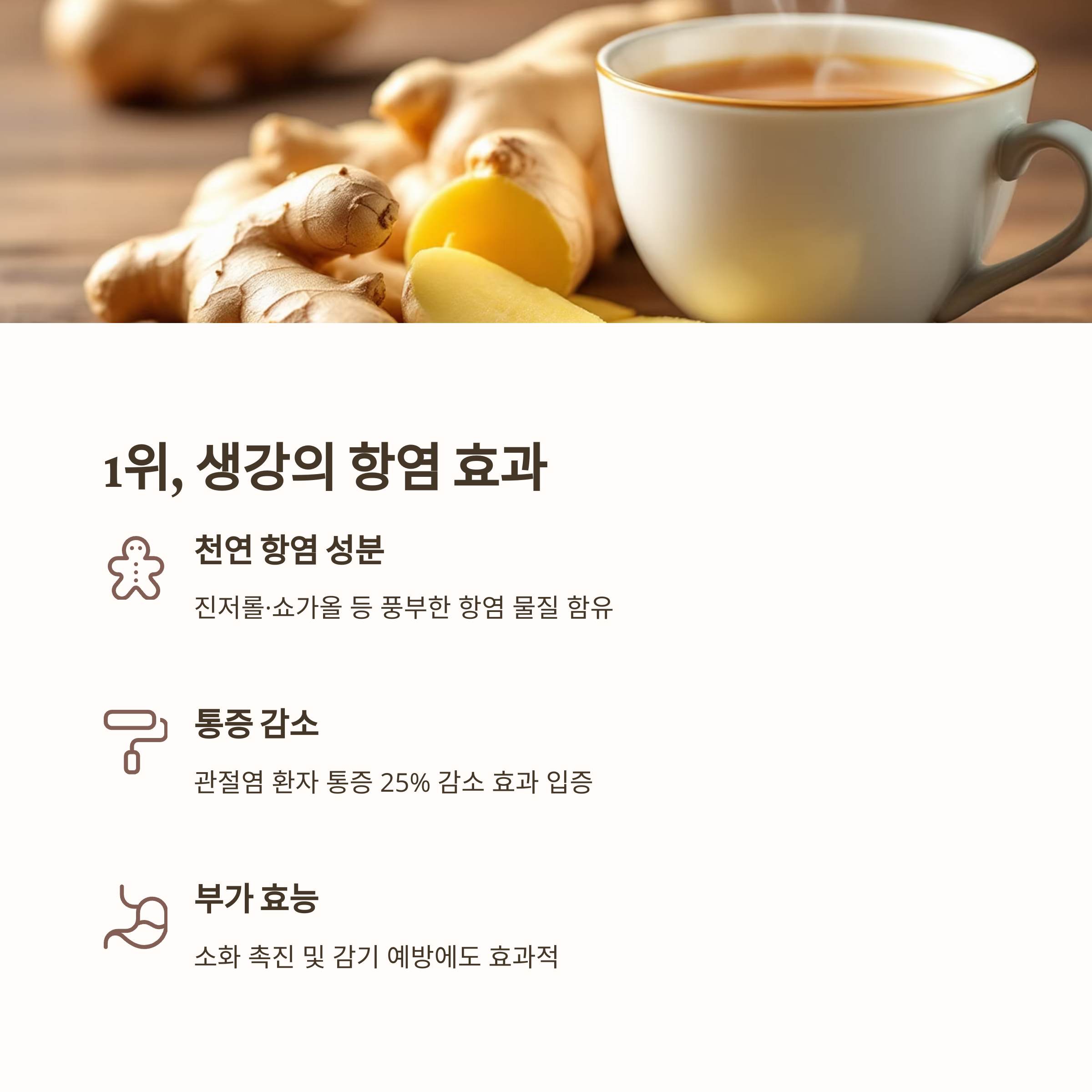 가장 큰 특징은 강력한 **항염 성분 '진저롤'**입니다.