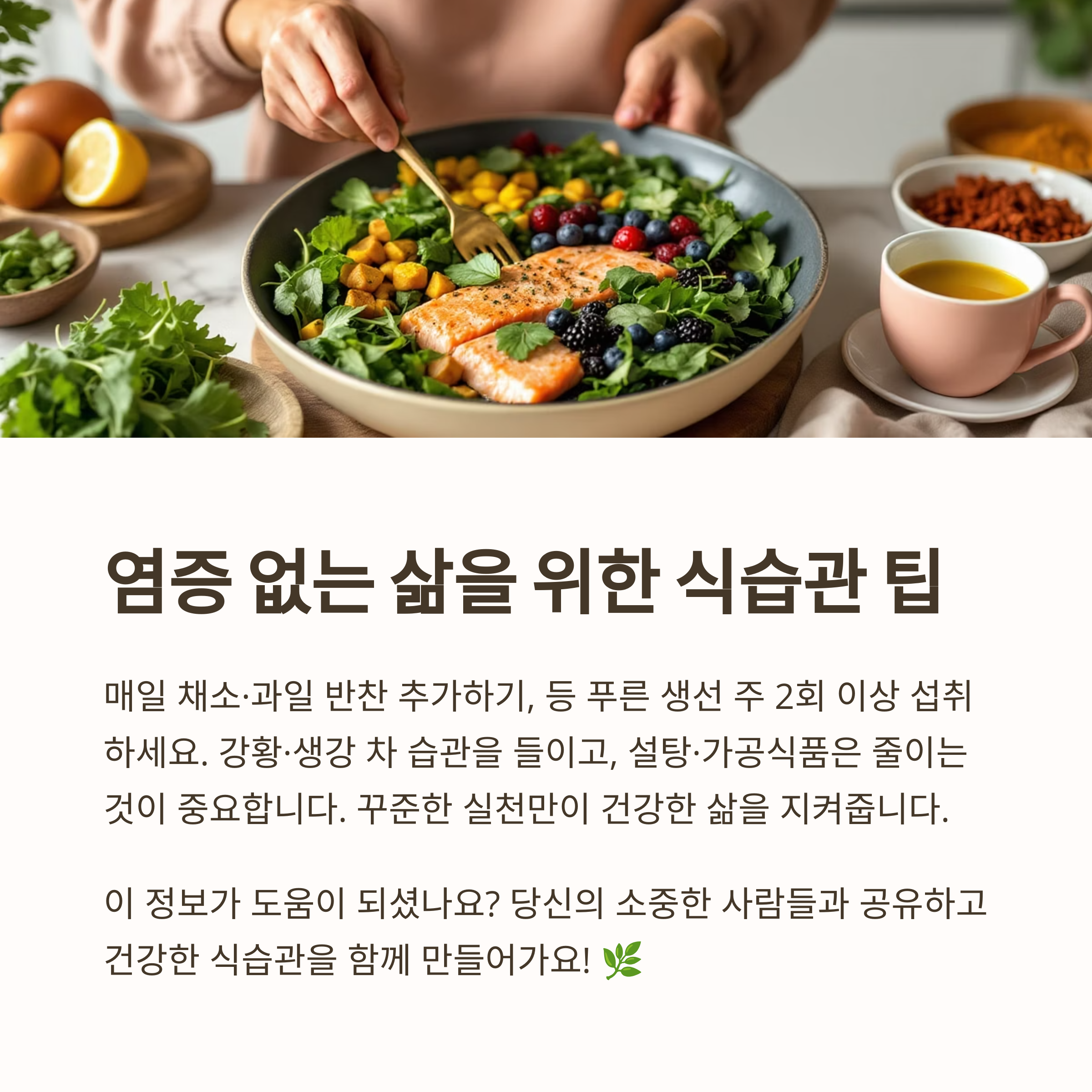 - 주 3회 이상 항염 식품 중심으로 식사하기