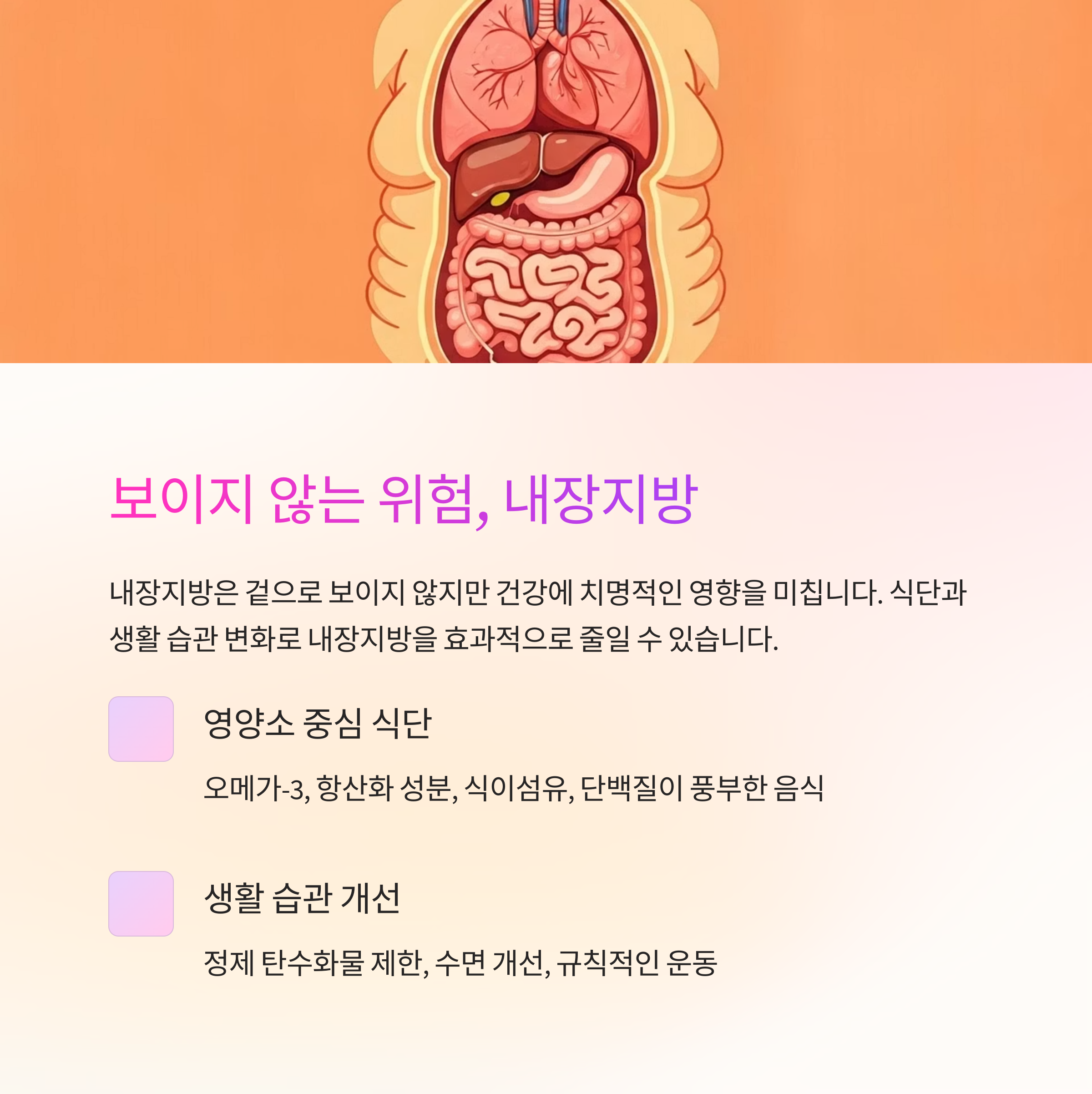 "내장지방은 운동보다도 식단과 생활 습관에 훨씬 민감합니다.
