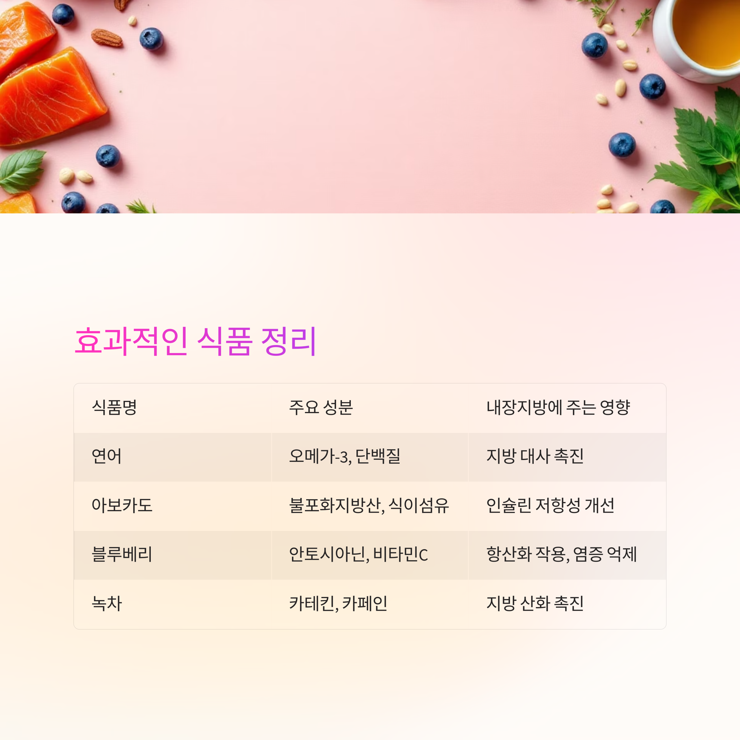식품명 주요 성분 내장지방에 주는 영향