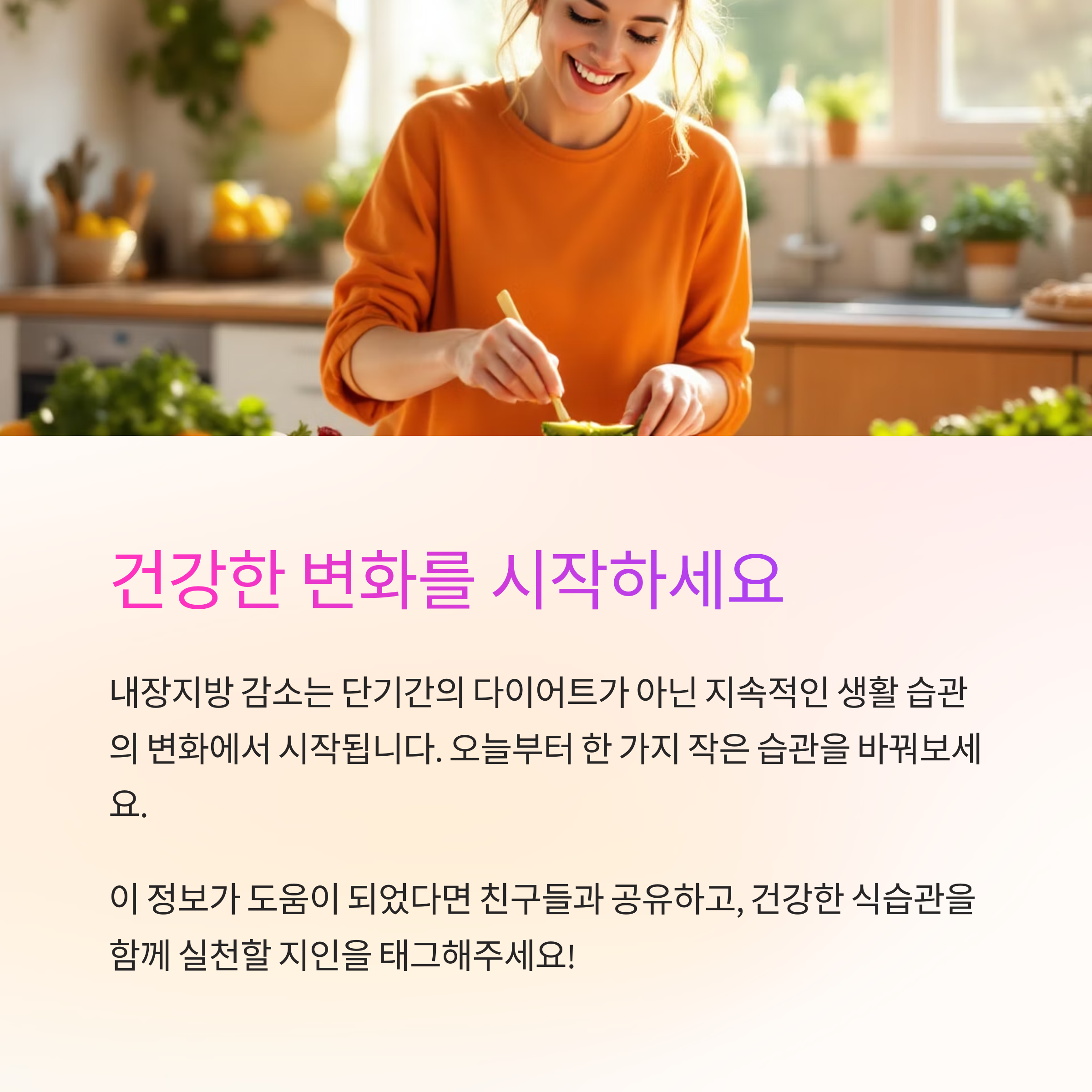 식단과 생활 습관을 바꾸면 내장지방을 줄이는 데 실질적인 도움이 됩니다.