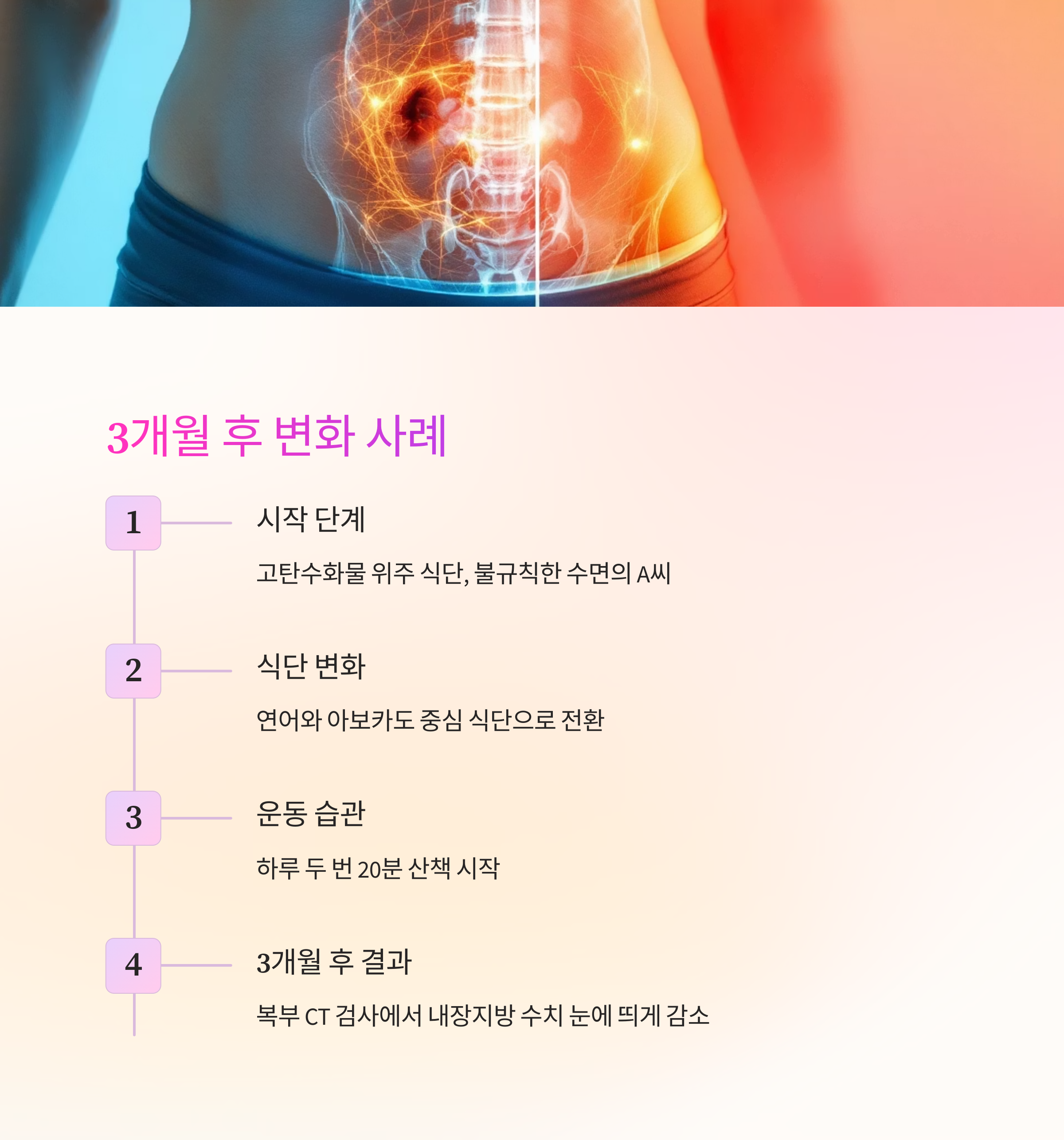 "내장지방은 운동보다도 식단과 생활 습관에 훨씬 민감합니다.