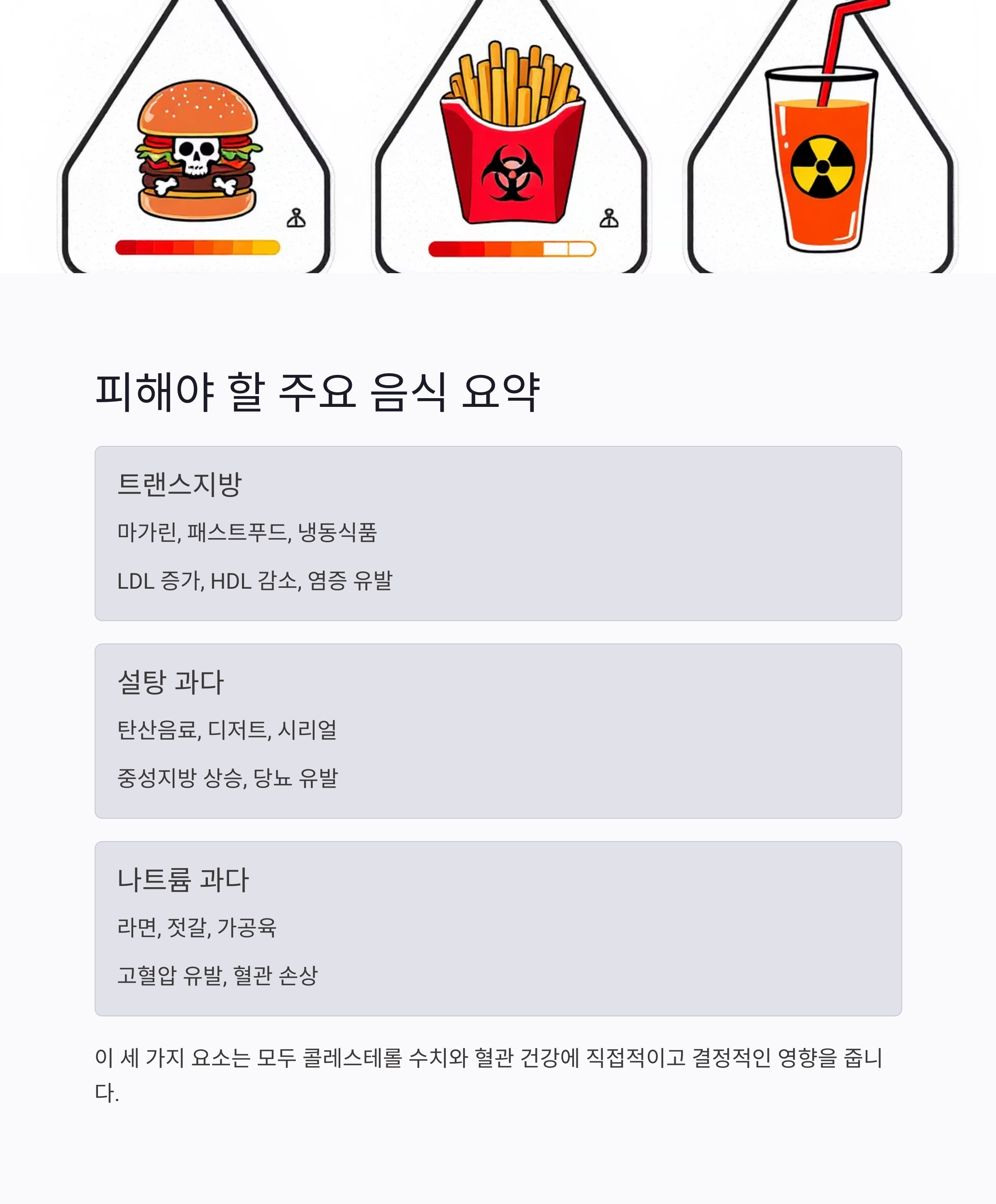 이 세 가지 요소는 모두 콜레스테롤 수치와 혈관 건강에 직접적이고 결정적인 영향을 줍니다.