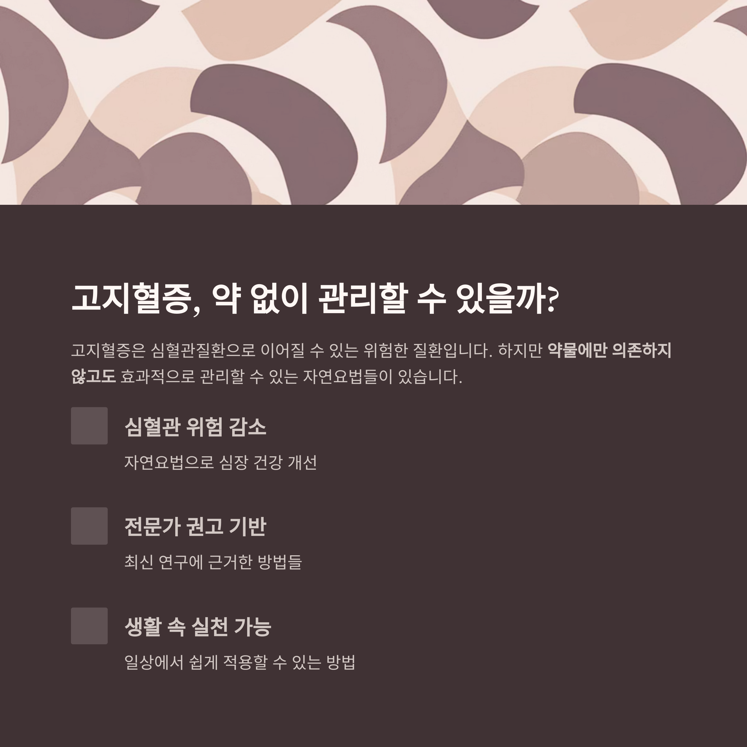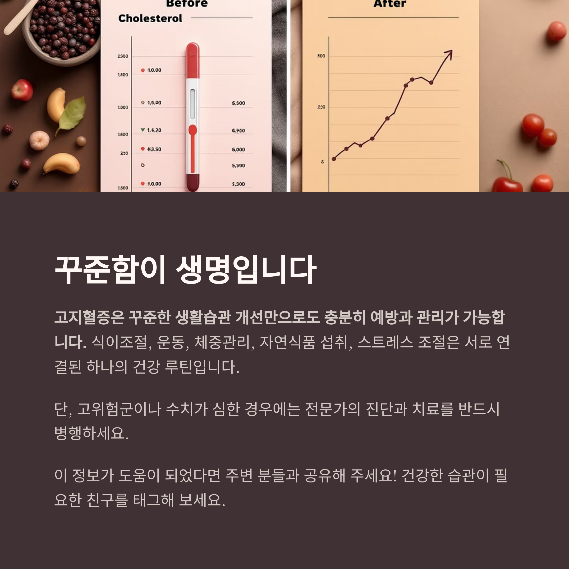 고지혈증은 꾸준한 생활습관 개선만으로도 충분히 예방과 관리가 가능합니다.