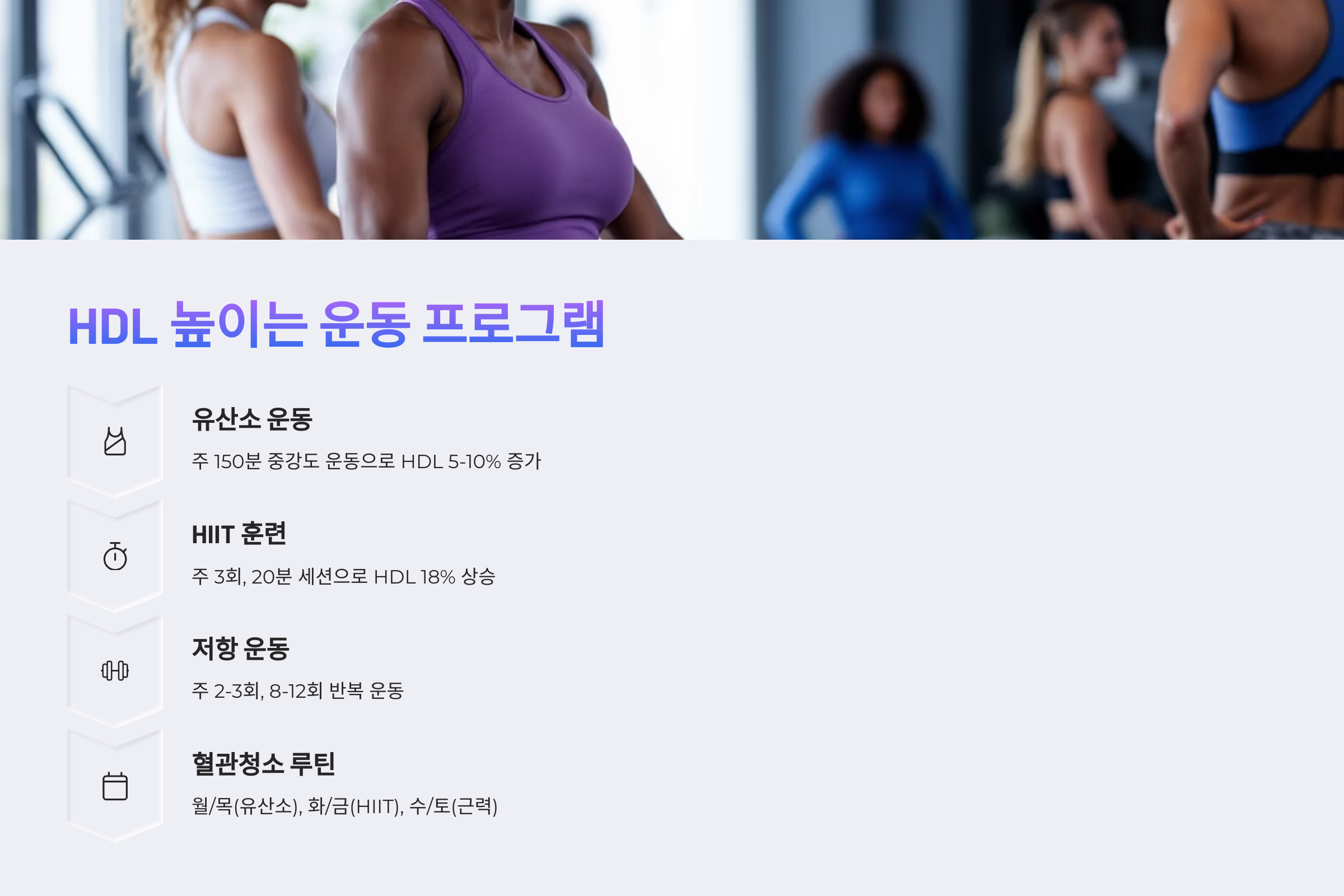 꾸준히 위와 같은 루틴을 지키면 2~3개월 안에 HDL 수치 개선 효과를 체감할 수 있어요. 단, 개인 체력에 따라 조절해 주세요.