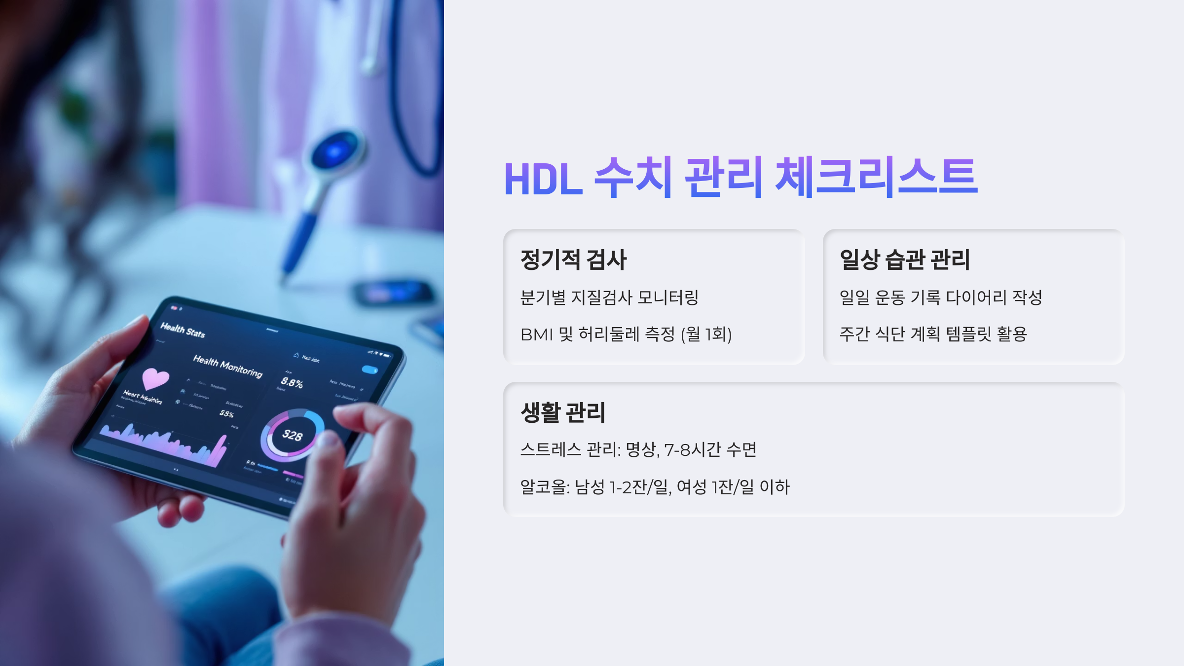 꾸준함이 HDL 수치의 핵심이에요. 오늘부터 하나씩 실천해보세요!