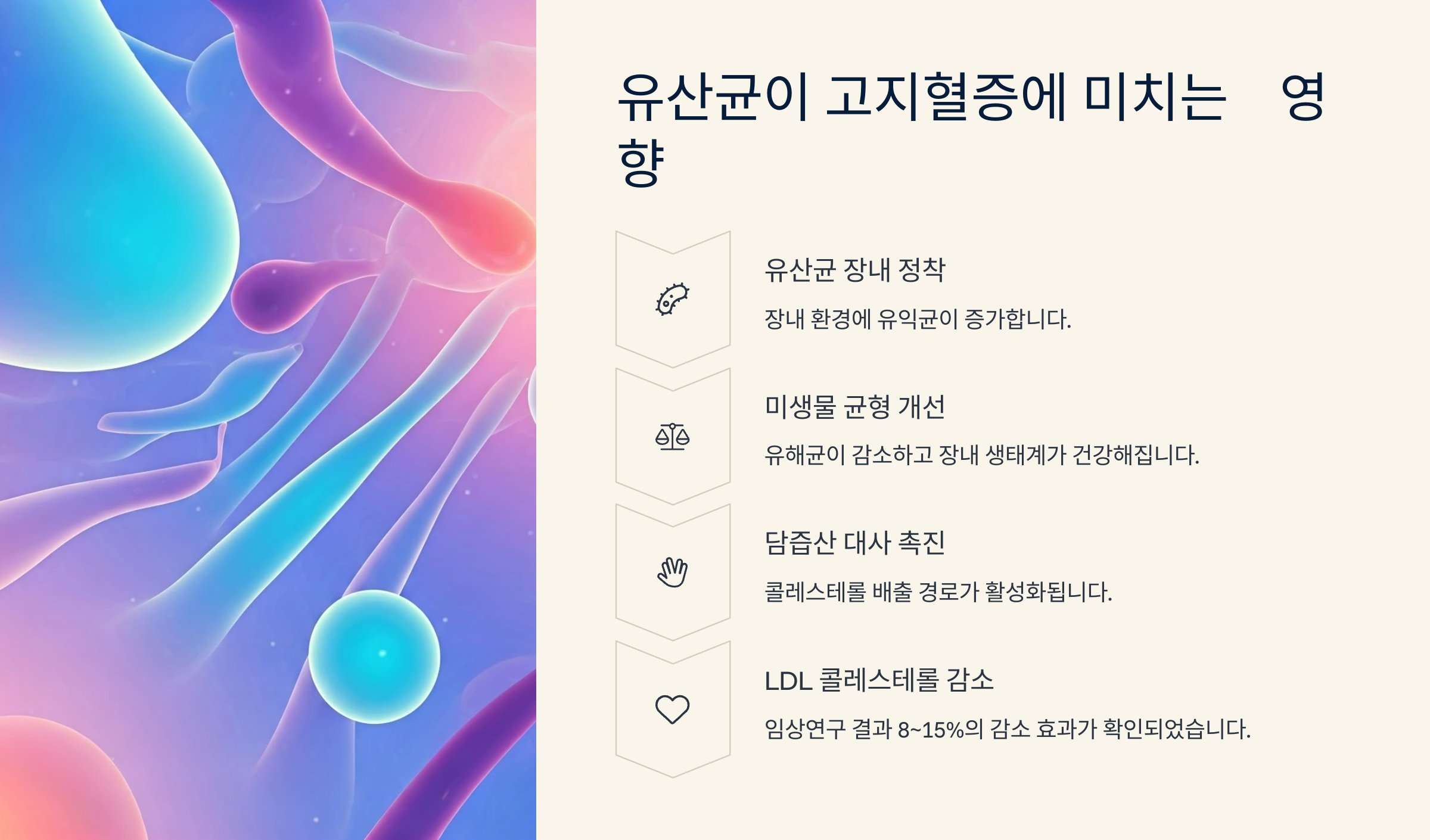 고지혈증은 단순히 콜레스테롤 수치만의 문제가 아니라, 우리 몸 전체의 대사 건강과 직결되는 만성질환이에요. 유산균은 그중에서도 비교적 접근이 쉬운 보조 수단이죠. 하지만 효과는 곧바로 나타나지 않기 때문에, 근거 있는 균주를 선택하고 장기적으로 복용하는 게 무엇보다 중요합니다. 오늘 알려드린 내용을 바탕으로 나에게 맞는 유산균을 선택해, 건강관리 루틴에 꼭 한 자리 마련해보세요!