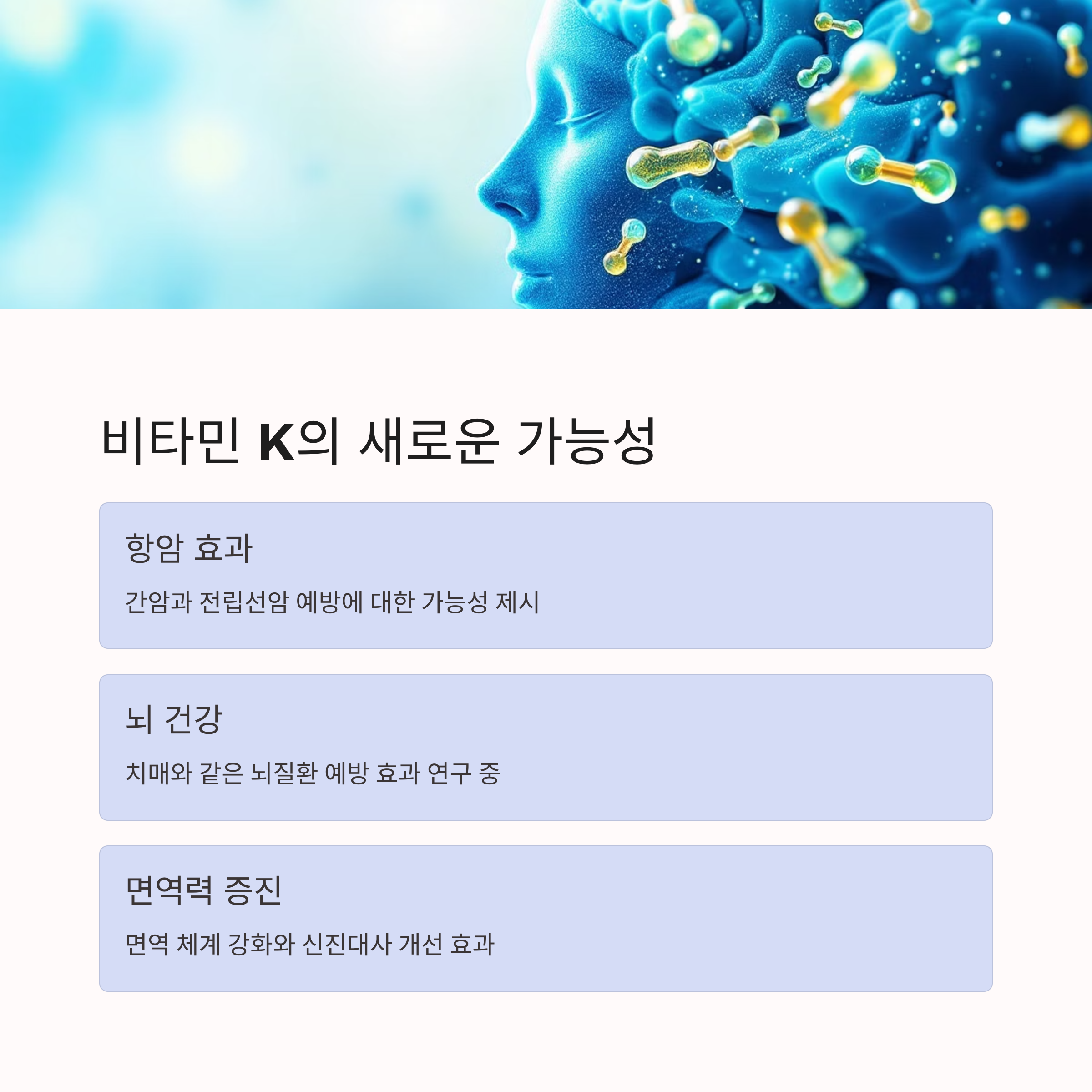 최근 연구에 따르면 비타민 K는 항암과 뇌 건강 측면에서도 주목받고 있습니다.