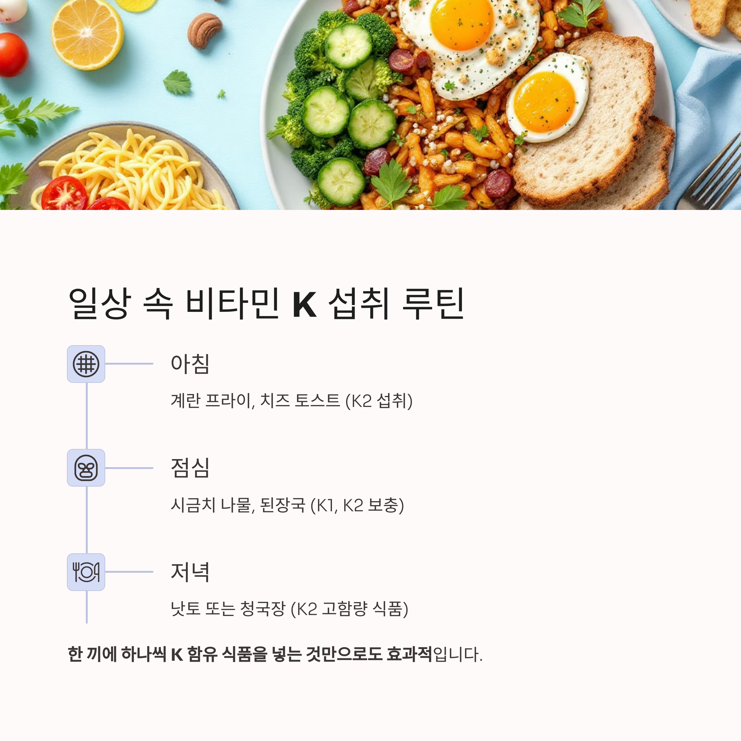 실생활에서 비타민 K 섭취를 늘리기 위한 예시 루틴입니다.