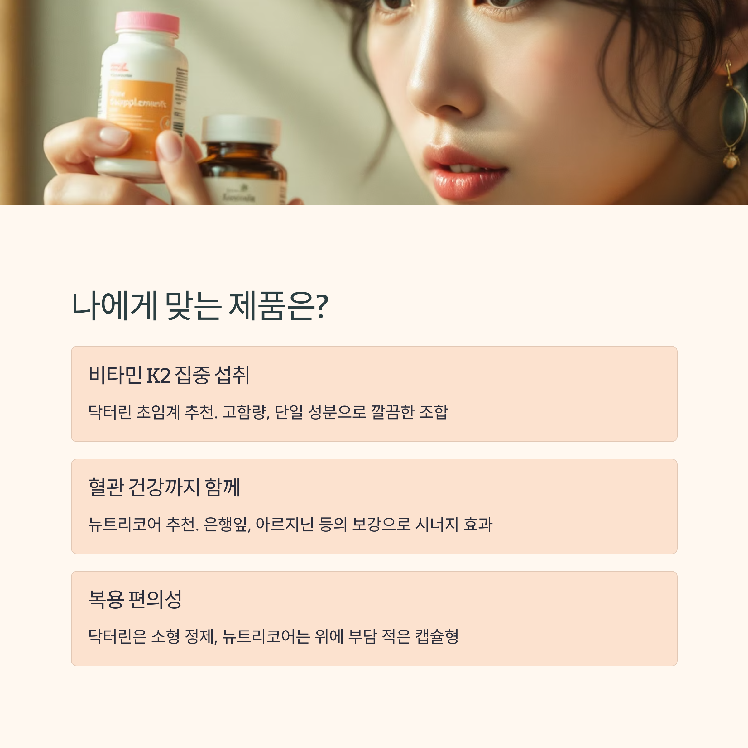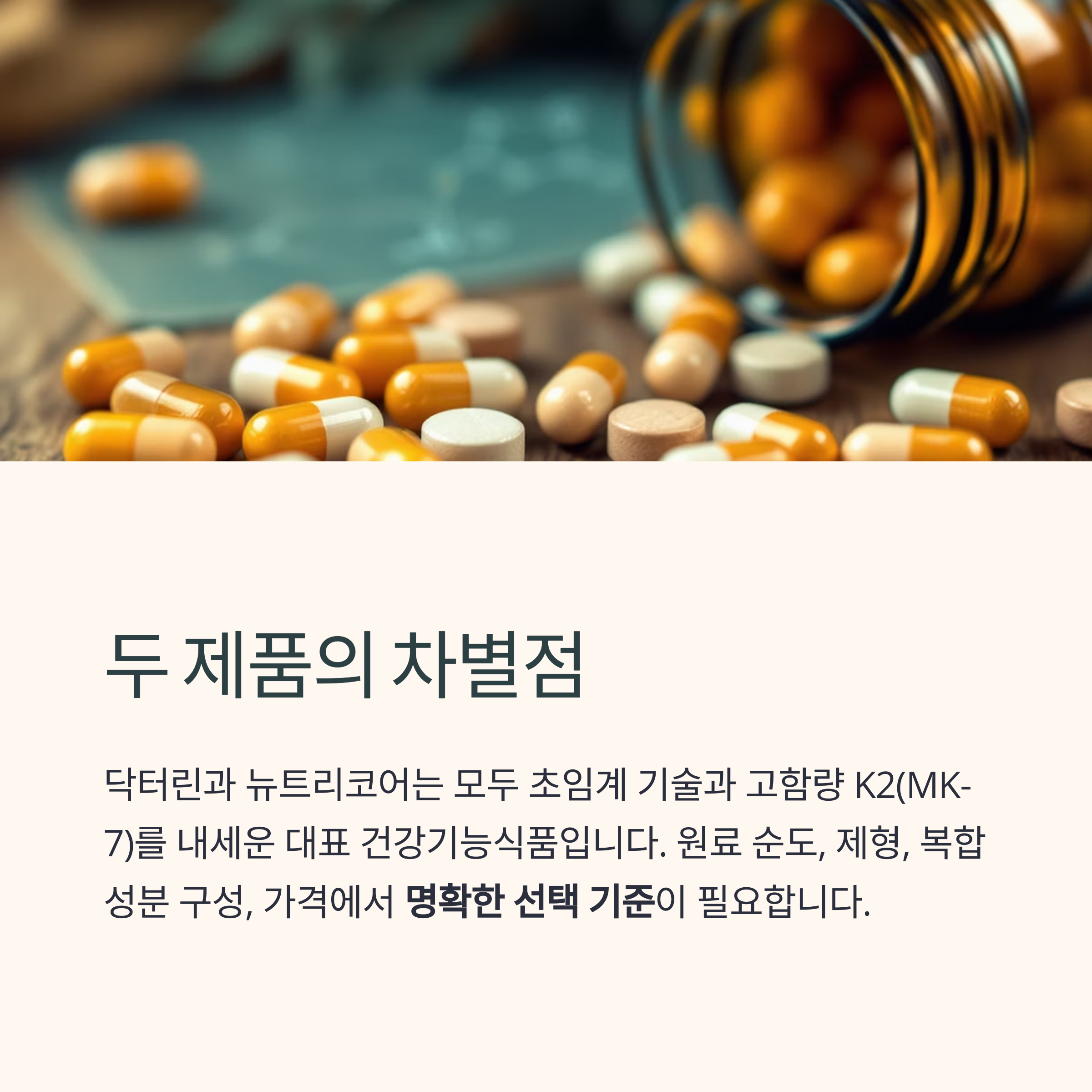 뼈 건강과 혈관 건강을 한 번에 챙길 수 있는 고함량 비타민 K2 제품, 닥터린과 뉴트리코어의 차이를 집중 분석합니다