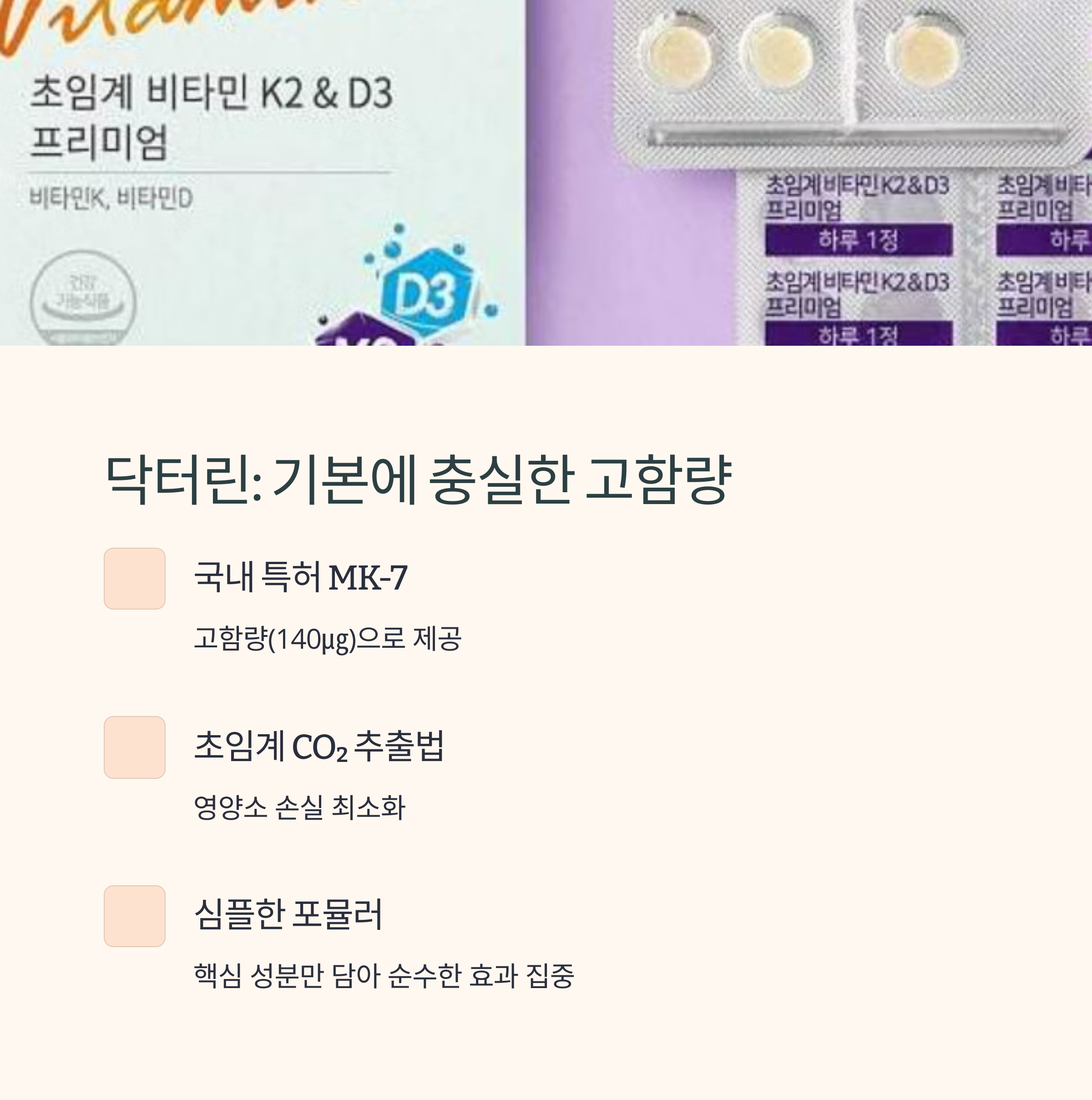 비타민 K2와 D3의 순수한 효과에 집중하고자 하는 소비자에게 적합합니다