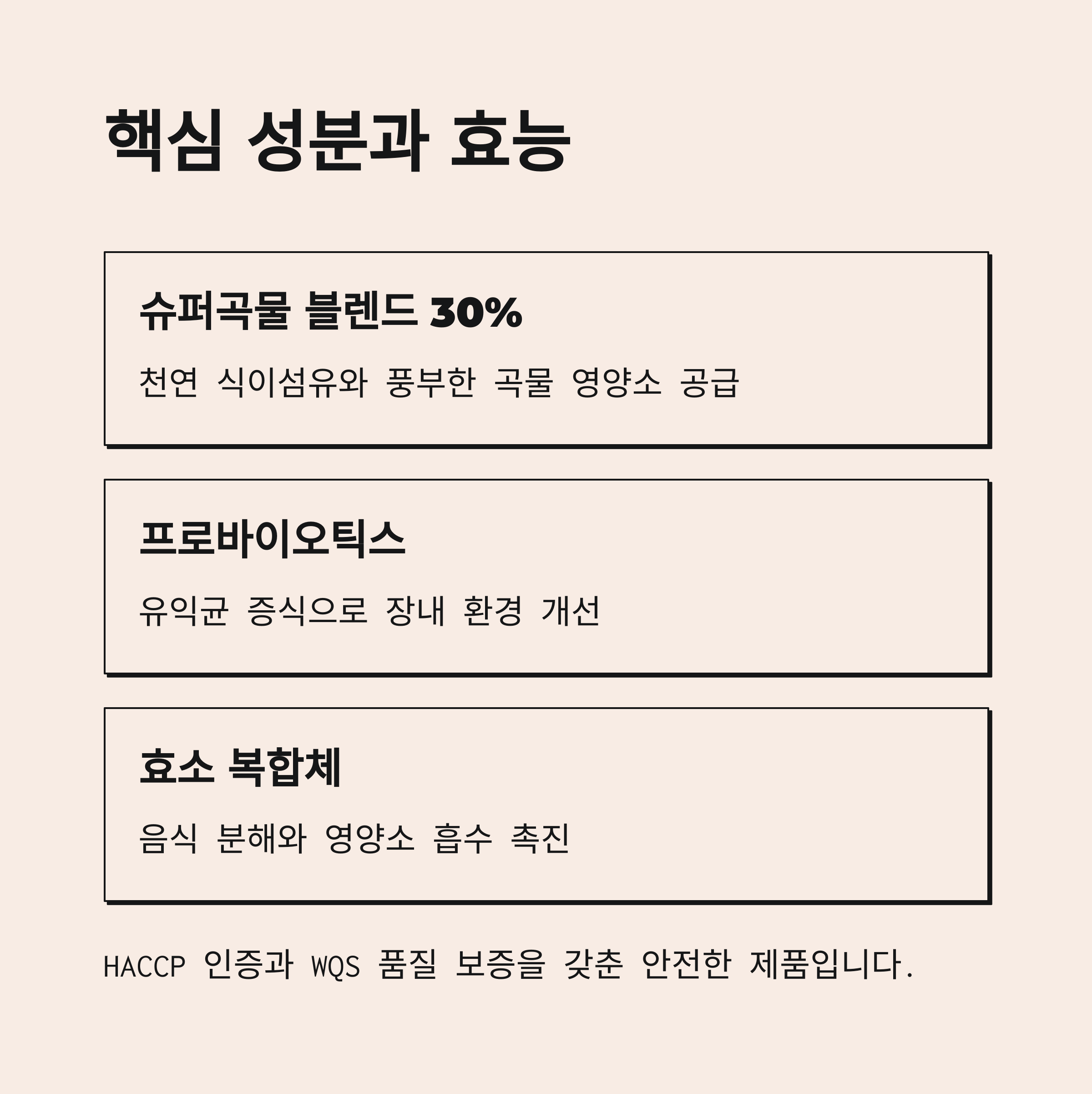 - 7종 슈퍼곡물효소블렌드 30%: 천연 식이섬유와 곡물 영양소 공급