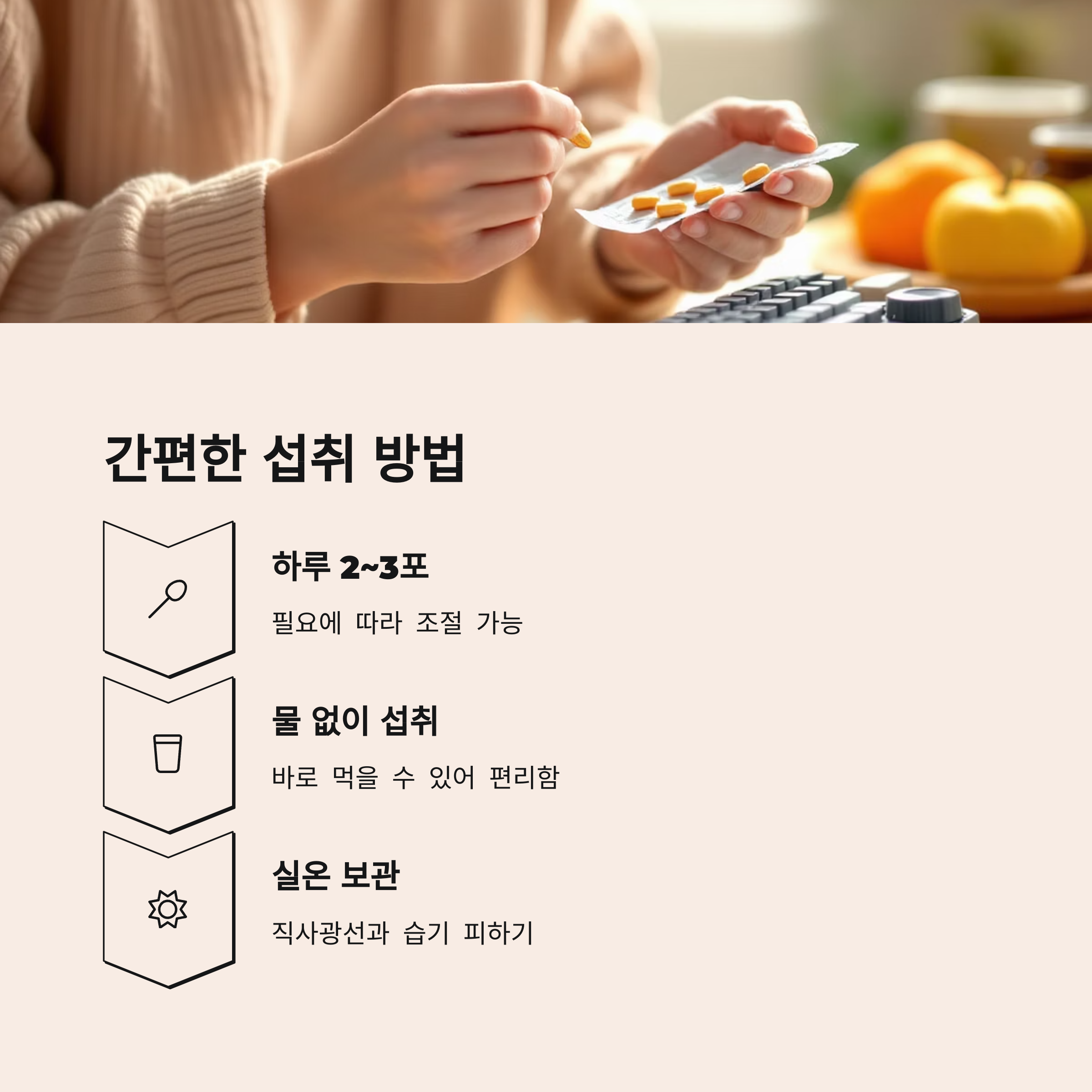 복용 방법: 하루 2~3포, 물 없이 바로 섭취 가능
