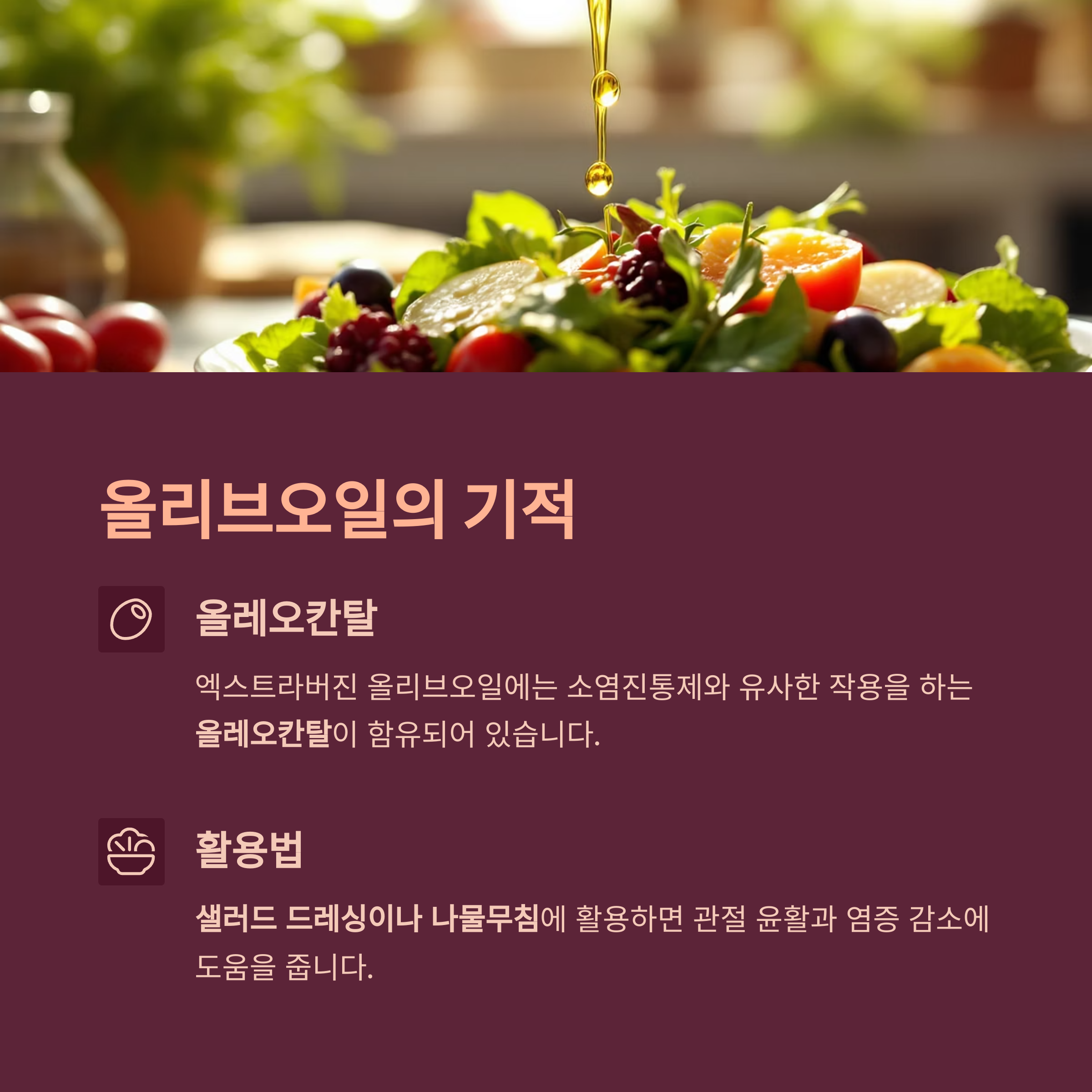 올리브오일 한 스푼의 기적: 올레오칸탈의 항염 작용