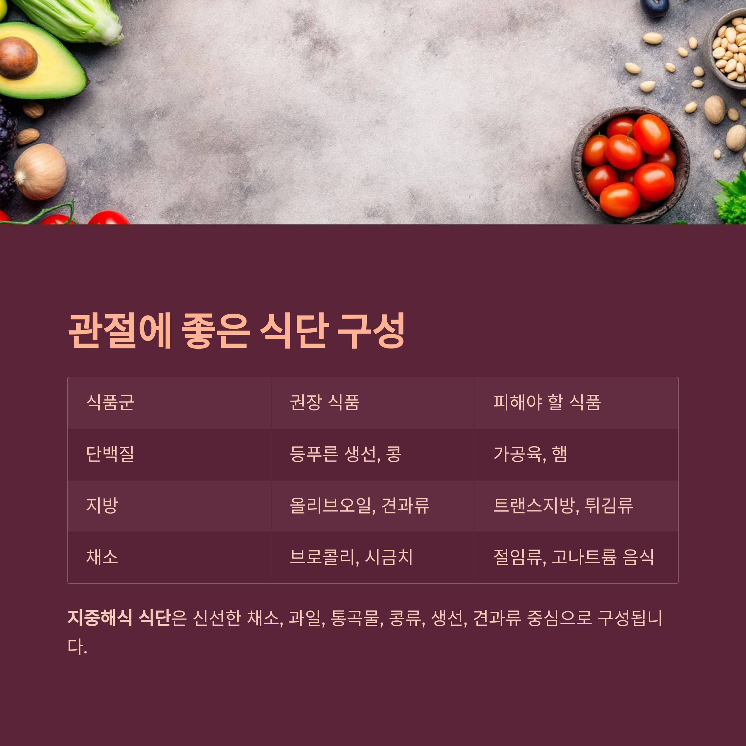 관절에 좋은 식단의 핵심 구성은?