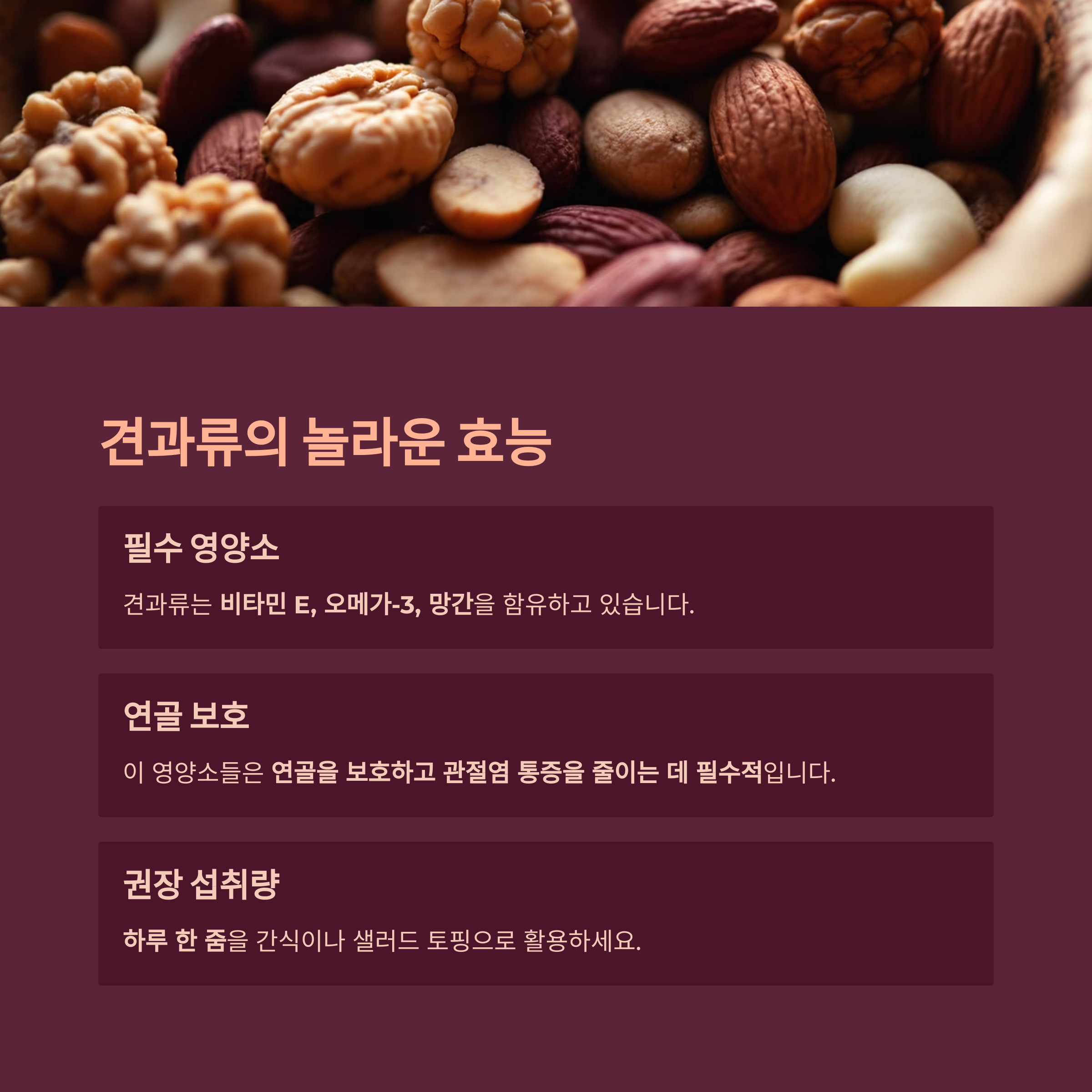 이 글에서는 관절염에 좋은 대표적인 음식 10가지와 함께, 염증을 완화하고 뼈 건강을 지켜주는 식사 관리법을 구체적으로 안내드립니다.